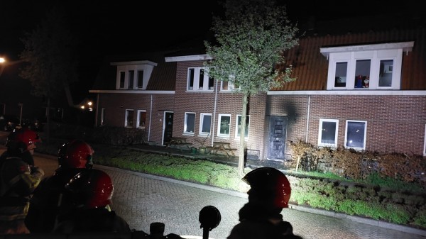 Opgroepen voor een woningbrand maar eerder opgewacht door de politie. Waarschijnlijk een vuurwerkbom met brandbare vloeistoffen ontploft en zij gaan eerst alles controleren. Na vrijgave de woningbrandmogen blussen.