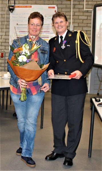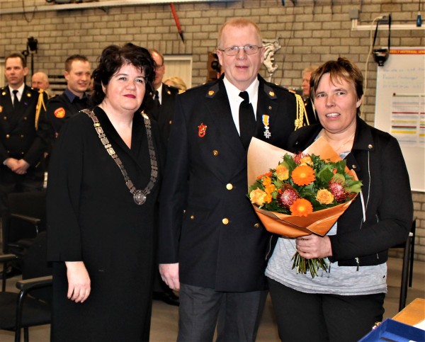 Daarna werd Cees van Baar naar voren geroepen door de burgemeester. Mevr. van Beek draaide de penning van haar ambtsketting om waarna Cees een koninklijke onderscheiding uitgereikt kreeg voor zijn jarenlange inzet voor de maatschappij.